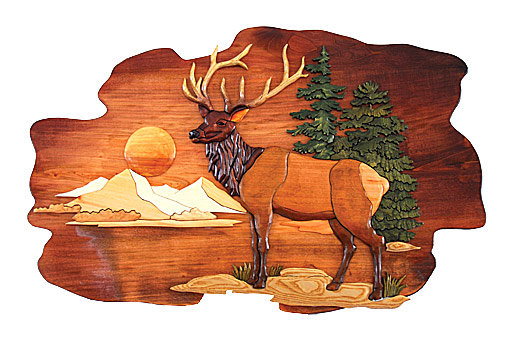 The Burly Bears Elk Intarsia is 23" by 15". It is hand crafted to ensure quality and uniqueness. Because it is hand crafted, each is different. No two are exactly the same. This beautiful piece of art will make a lovely addition to your home, cabin, or lake house. No shipping to Alaska, Hawaii, or Canada. Please allow 3-5 weeks for delivery.